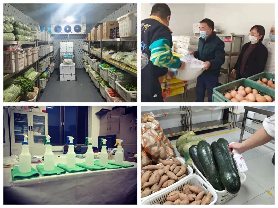 在學(xué)府等辦公區(qū)的儲(chǔ)藏室,“消毒液2000L、一次性餐盒23000個(gè)、口罩1500個(gè)、洗漱用品100余套、芹菜100斤、茄子300斤、土豆500斤、圓白菜500斤...”,工作人員正在認(rèn)真地清點(diǎn)核對(duì)采購(gòu)回來(lái)的各種物資。